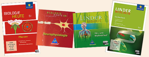 "Linder Biologie SII", "Biologie heute entdecken S II", "BIOskop" (S I und S II), "Biologie heute aktuell" (S I), "Erlebnis Biologie" (S I)